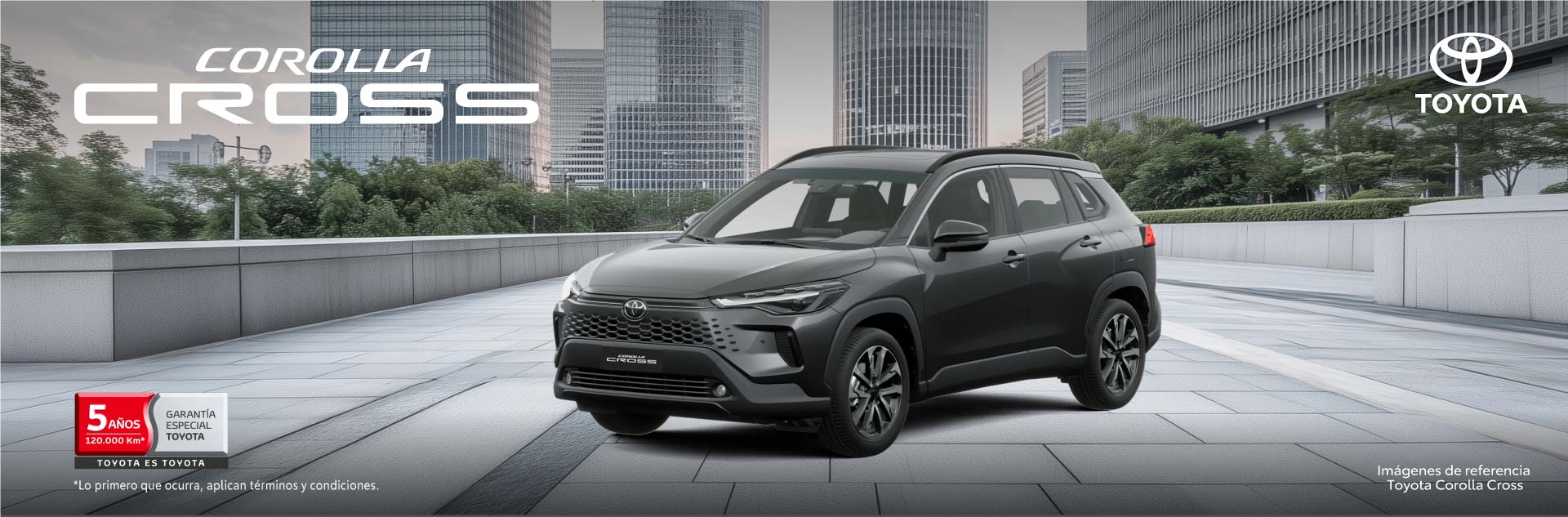 *La Garantía Toyota aplica únicamente para vehículos nuevos importados por Automotores Toyota Colombia S.A.S. (“ATC”), comercializados y facturados por los concesionarios de la red de ATC. La garantía tiene una cobertura de 5 años contados a partir de la fecha de entrega del vehículo al cliente o 120.000 km., lo primero que ocurra. Los primeros 3 años y/o los 100.000 km. iniciales corresponden a la garantía de fábrica, los siguientes 2 años y/o los 20.000 km. adicionales, corresponden a la garantía suplementaria ofrecida por ATC.